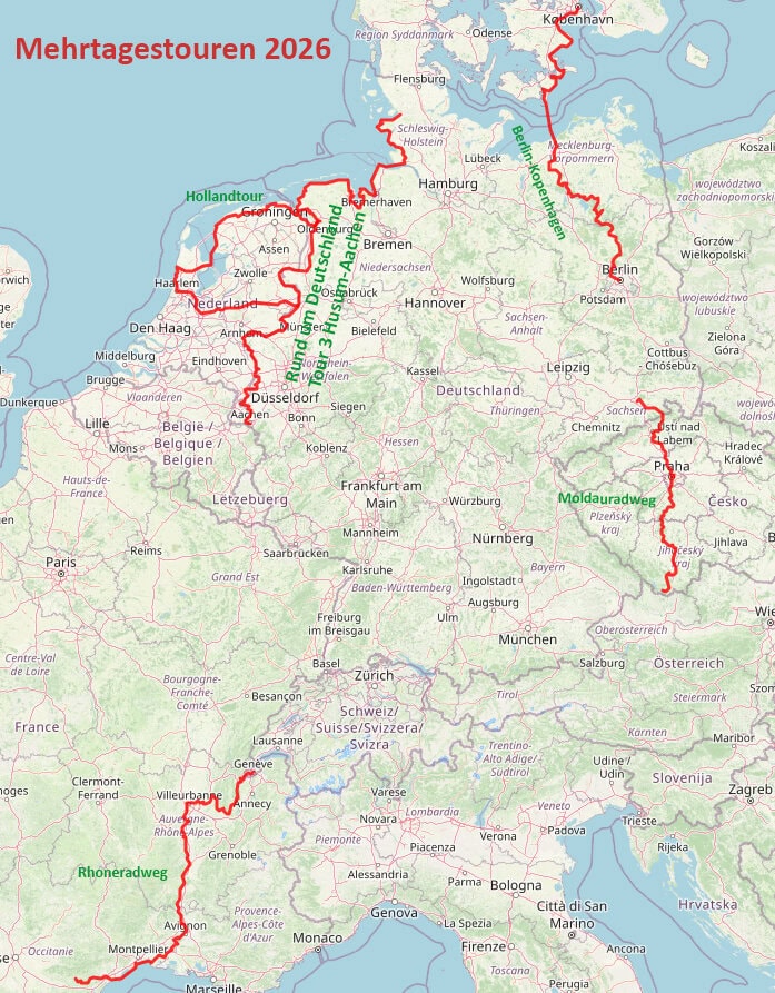 Meine Tourplanung für dieses Jahr ist im Wesentlichen abgeschlossen und wenn alles so klappt, wie ich mir das so denke, wird das auch erneut ein spektakuläres Fahrradjahr. Ende Mai geht es dann los mit der ersten Mehrtagestour.