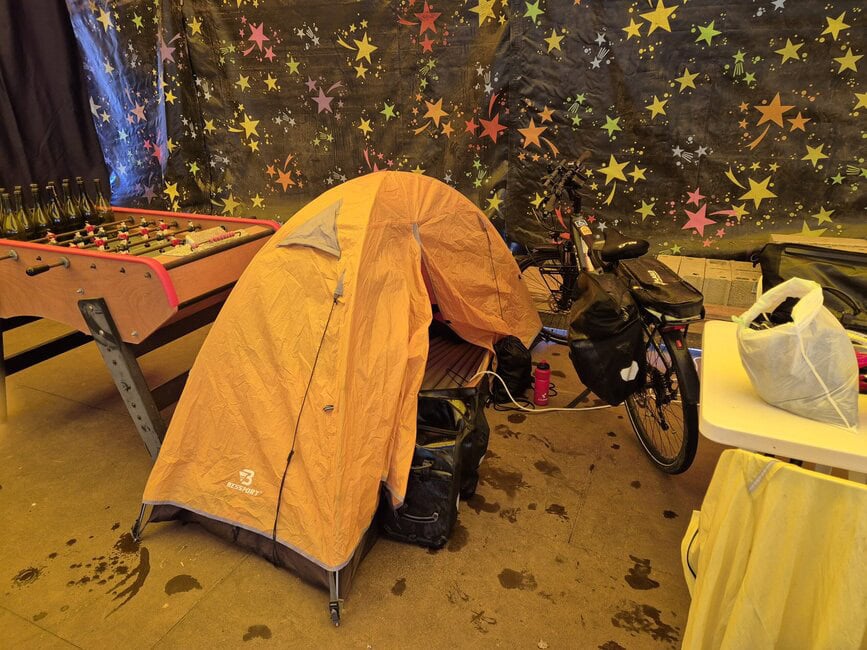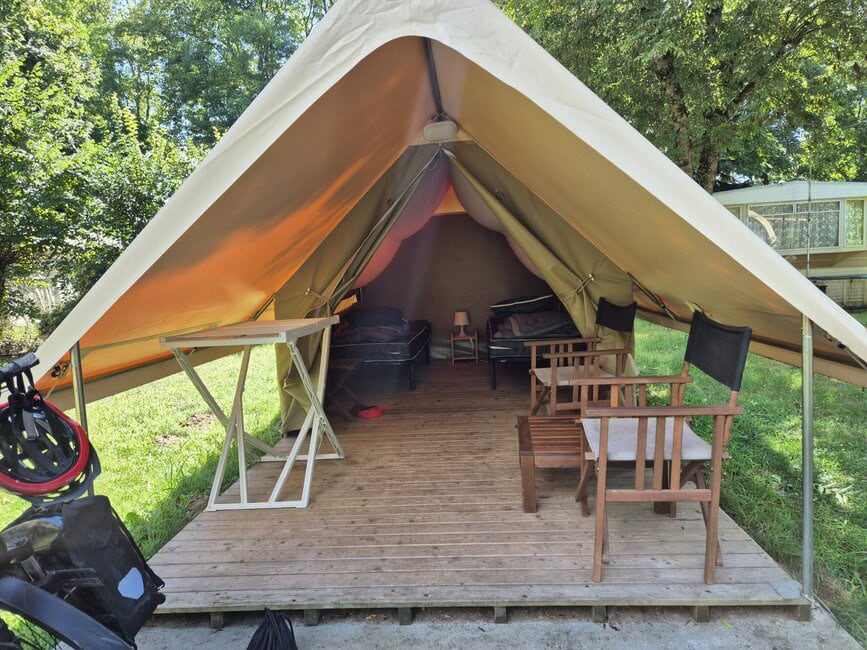 Holland und Belgien waren vier Etappen, die restlichen 26 waren in Frankreich zu fahren. Auch hier gleich zu den Radwegen. Es gibt deutlich weniger als in Deutschland, man fährt oft auf Straßen. Das war alles sehr ähnlich dem, was wir hierzulande haben. Es gibt immer wieder tolle Radwege und Fahrradstrassen, aber der Schnitt ist eher dürftig. Die Verkehrsführung für Radler, ähnelt der in Holland und Belgien, da orientiert man sich an den Guten. Die Campingplätze waren ausnahmlos gut und das Personal sehr nett. Überall auf den Plätzen kam man mit Übersetzerapp auf dem Handy und mit rudimentären Englischkenntnissen gut durch. Sprach man unterwegs aber Einheimische an, war Schluß mit lustig. Die sprachen in der Regel nur französisch. Gewöhnungsbedürftig war das Thema Toiletten. Entweder gabs keine Brille oder kein Papier oder beides nicht. Normalität wie bei uns in Deutschland habe ich nur auf den Vier-Sterne-Plätzen erlebt und die hatte ich kaum. Da muß man sich anpassen und einfach durch. Auffallend war auch, dass die französische Bahn pünktlich abfährt und auch ankommt. Das durfte ich zweimal erleben. Mein Rad hat super durchgehalten. Ich war auf der gesamten Eurovelotour 2025 pannenfrei. Allerdings ist mir sonst mein Ständer von der rechten Seite schon am dritten Tag weggebrochen, aber ich hatte ja noch den normalen auf der linken Seite.