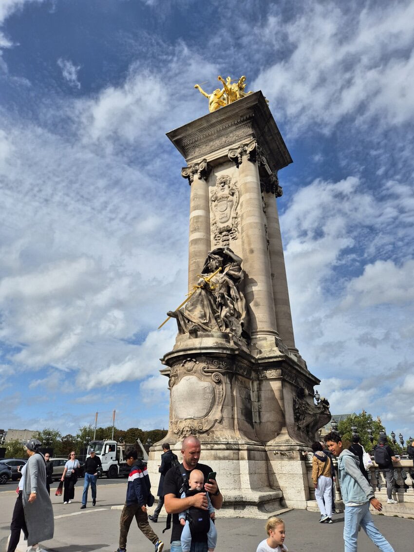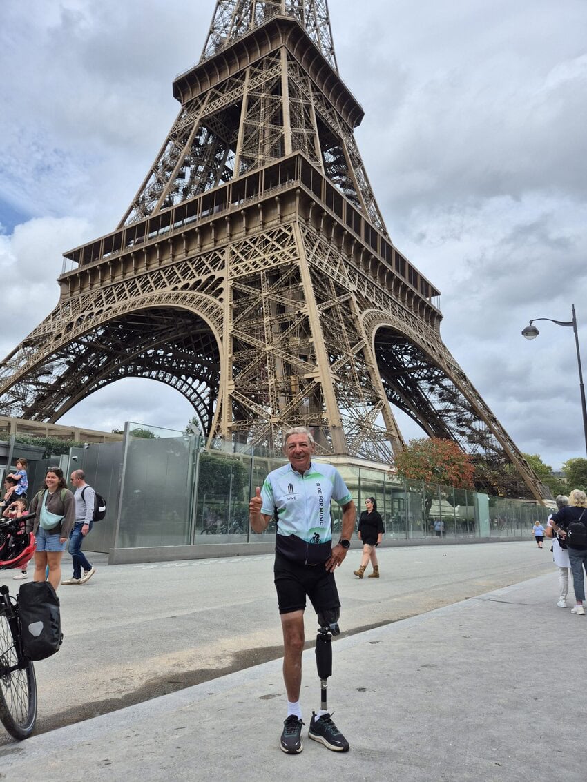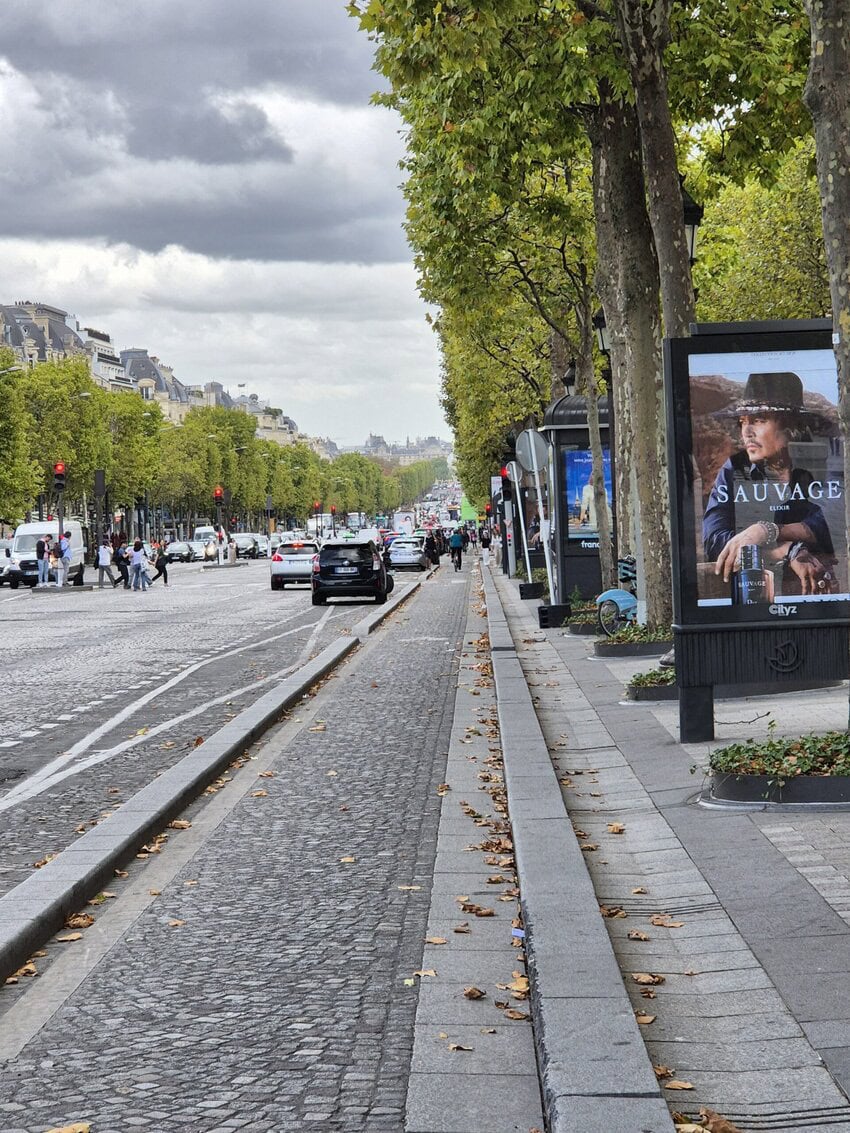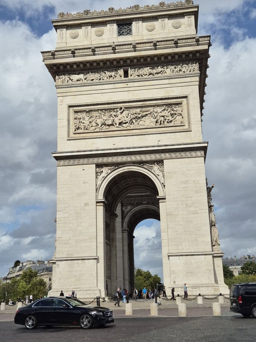 Meine letzte Etappe startete ich zunächst in der falschen Richtung. Das war wohl der Aufregung geschuldet. Das Wetter war trüb und hin und wieder kam etwas Nieselregen auf. Mein Zug nach Hause fuhr um 16:32 ab Paris Grande Est und ich hatte mir ausgerechnet, wann ich in Paris sein mußte um die wichtigsten Sehenswürdigkeiten noch abzufahren und zu fotografieren. Dafür hatte ich mir extra eine Route in Paris zurechtgemacht. Ich war auch passend da, inzwischen war auch bestes Wetter und hatte zunächst ein Problem mit meinem Navigationshandy. Der Akku wird normal über die Halterung aufgeladen, es kann aber durch die Erschütterungen passieren, dass nicht mehr nachgeladen wird. Ich hatte noch ne Powerbank dabei und habs halt drangehangen und das Fotohandy zum navigieren benutzt. Der Verkehr in Paris ist abartig. Man hat den Eindruck, dass jeder fährt wie er will. Man sollte sich da anpassen, wenn man voran kommen will. Und das habe ich auch getan. Es war definitiv ein Erlebnis diese ganze Größe und Masse an sehenswerten Gebäuden zu sehen. Überall war Massenandrang. Die Verkehrsführung war aber gut und so kam ich gut voran. Ziel war der Eiffelturm, wo ich Fotos von mir machen lassen wollte. Dort bin ich unter Missachtung einiger Vorschriften mit meinem Rad auch angekommen. Es wurden auch die passenden Fotos gemacht. Leider kam dann eine Militärstreife und ich musste den Platz verlassen. Bis zur Abfahrt des Zuges hatte ich noch eineinhalb Stunden Zeit für etwa 8 Kilometer und ich dachte, das schaffe ich locker. Dem war aber nicht so. Ich hab ne Brücke zur anderen Seite benutzt und bin dann Richtung Innenstadt und Bahnhof abgebogen. Und dann ging plötzlich nichts mehr. man kam selbst mit dem Rad nicht mehr durch. Ein Taxifahrer sagte mir, daß ich die Mittelspur nehmen soll, um an den Bussen vorbeizukommen. Das tat ich dann auch und schlussendlich bin ich dann einfach gefahren wo Platz war. Einfach glorreich war dann auch die Fahrt am Arc de Triomphe und auf dem Champs-Élysées. Dann war wieder Stau und ich nahm den Fussweg. Etwa 1 km vor dem Bahnhof war dann plötzlich freie Fahrt und ich war 30 Minuten vor Abfahrt des Zuges da.